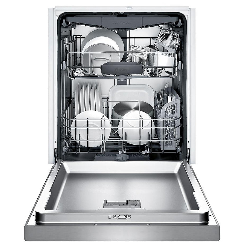 Upgrade your kitchen with the elegant performance and quiet operation of the Bosch 300 Series Dishwasher, model SHEM63W55N. With its sleek stainless steel finish and refined design, this built-in appliance offers advanced features to simplify your dishwashing routine while fitting seamlessly into your cabinetry.
