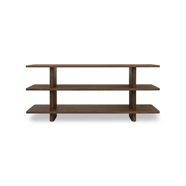 The Casey bookcase embodies contemporary elegance, marrying form and function with understated sophistication. A vertical support with a bullnose edge softens the silhouette, introducing an organic feel to the rectangular shelving.